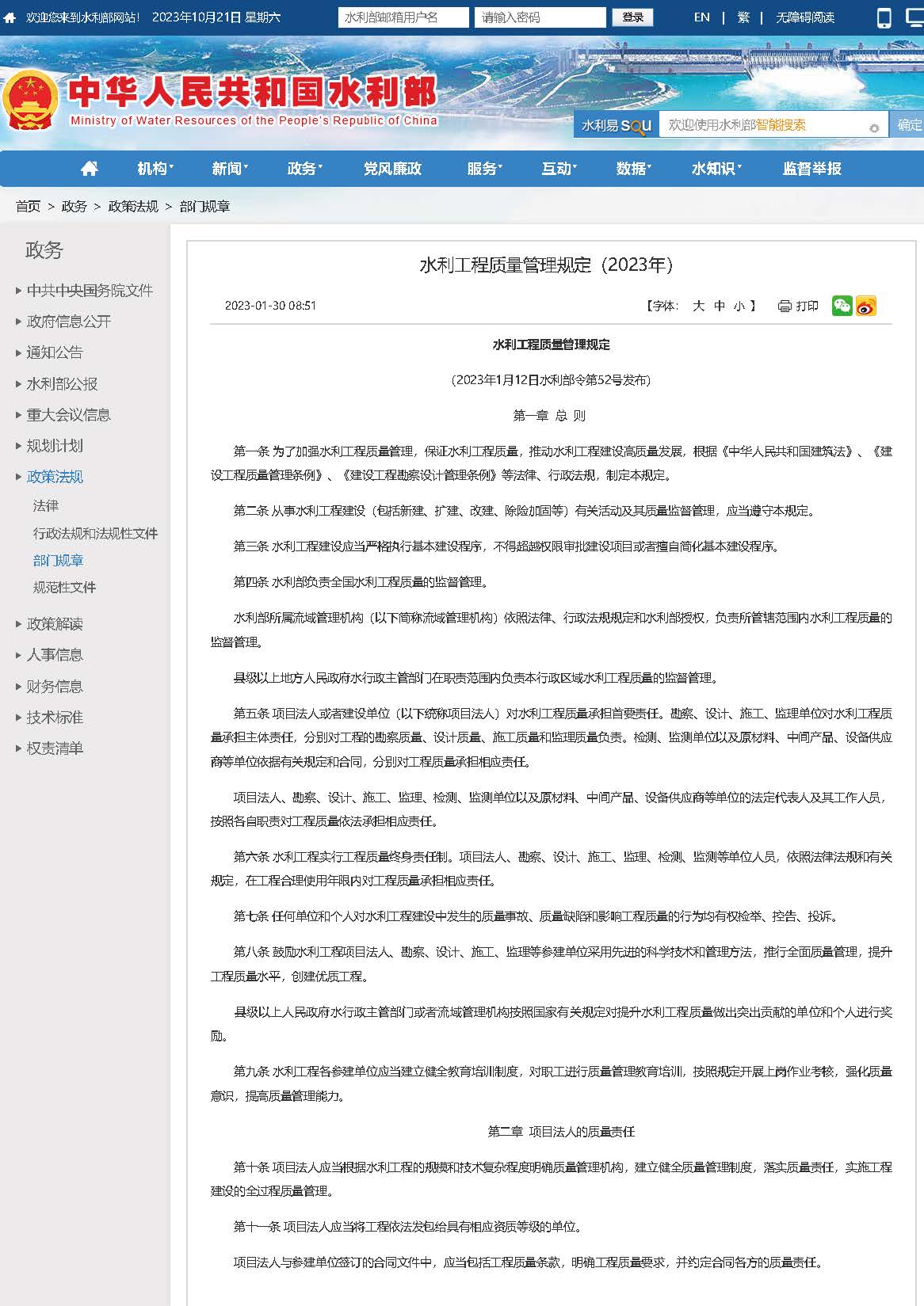 《水利工程質(zhì)量管理規(guī)定(2023年)》水利部令2023年第52號(hào)
