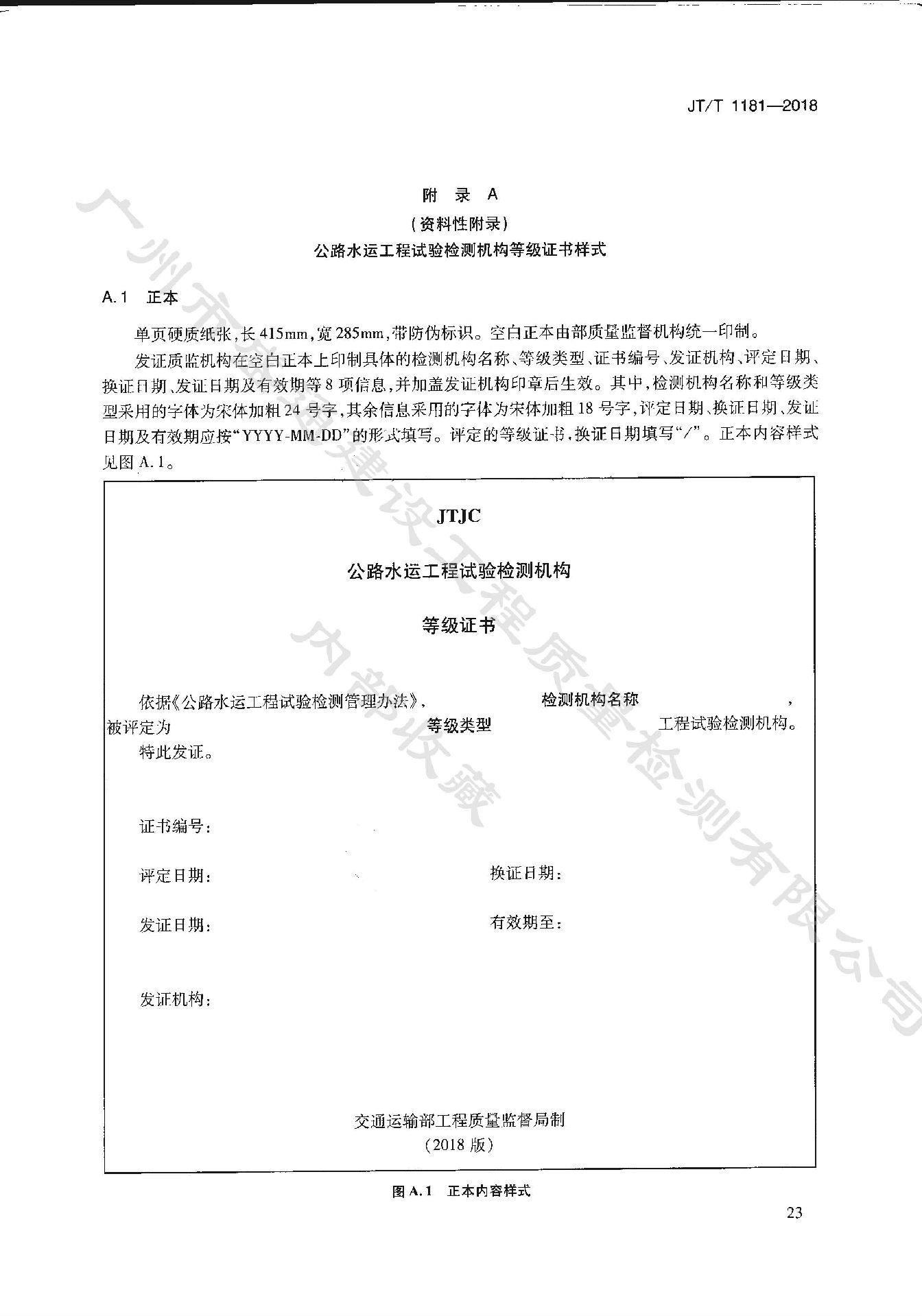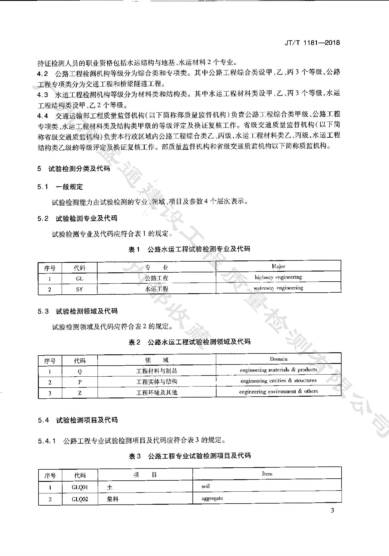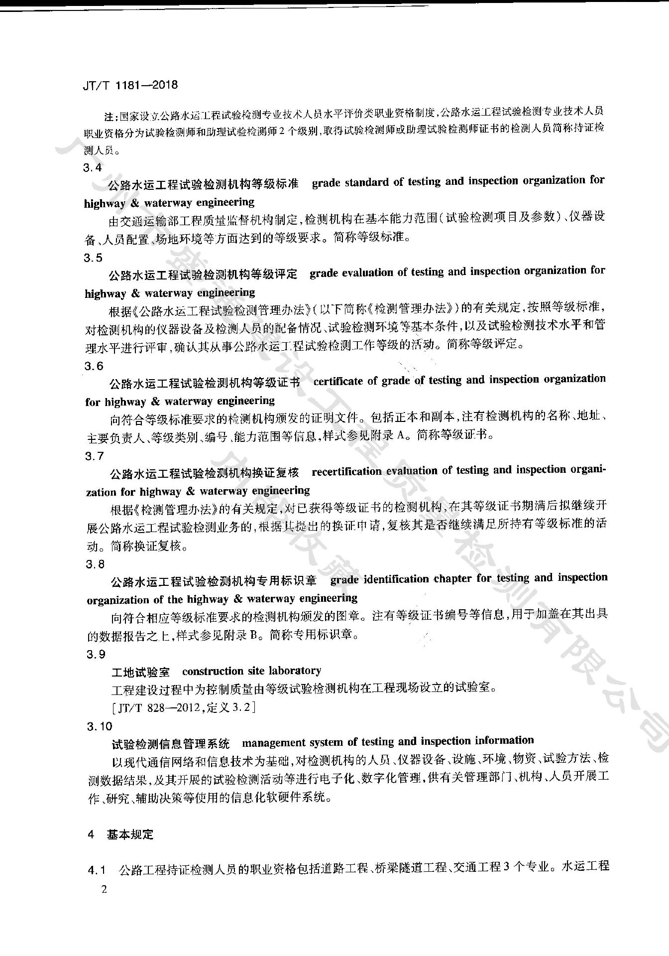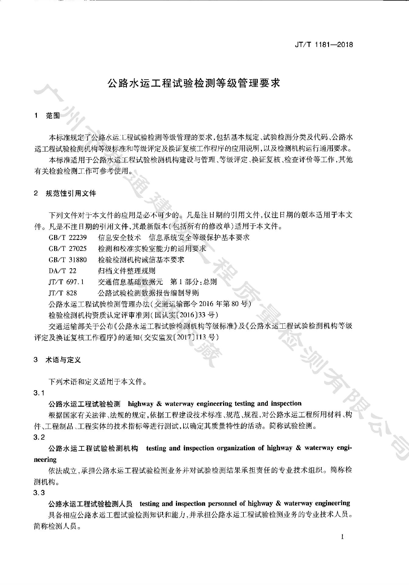 《公路水運工程試驗檢測等級管理要求》JT_T 1181-2018